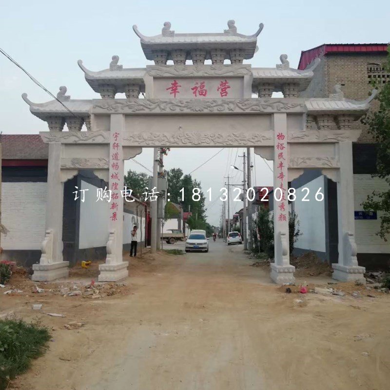 四、注意周圍環景,做好安全防范措施。一般牌坊都安裝在村口、路口、石雕廠家景區等人流量大的地方,要拉警戒線或派專人警戒避免行人、群眾靠近。
