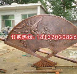 喜鵲登梅銅浮雕,扇形銅浮雕