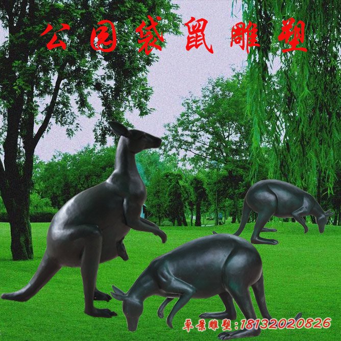 公園簡約袋鼠銅雕