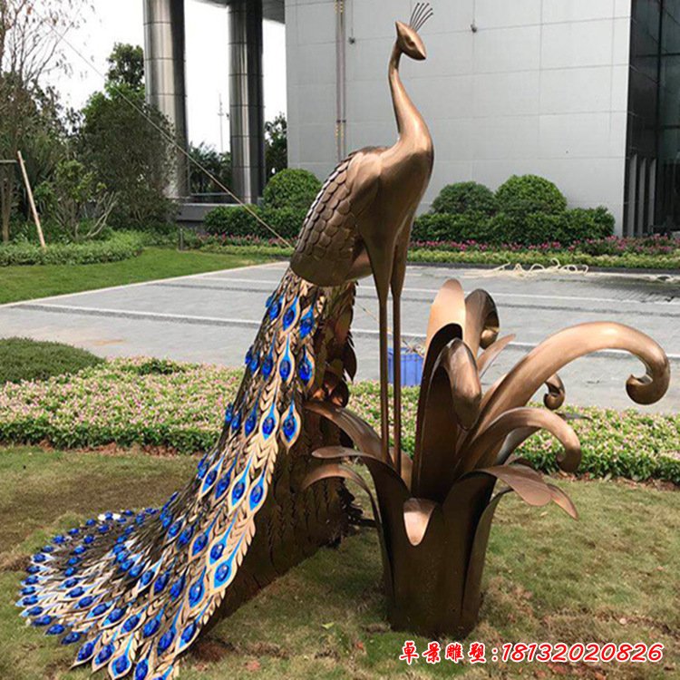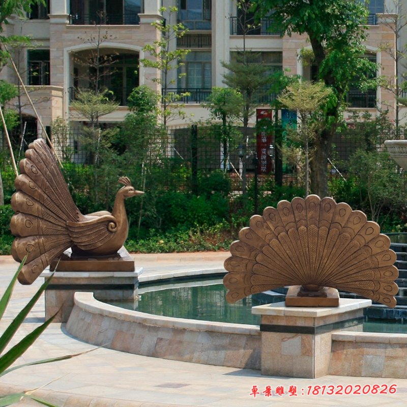 銅雕廣場孔雀雕塑