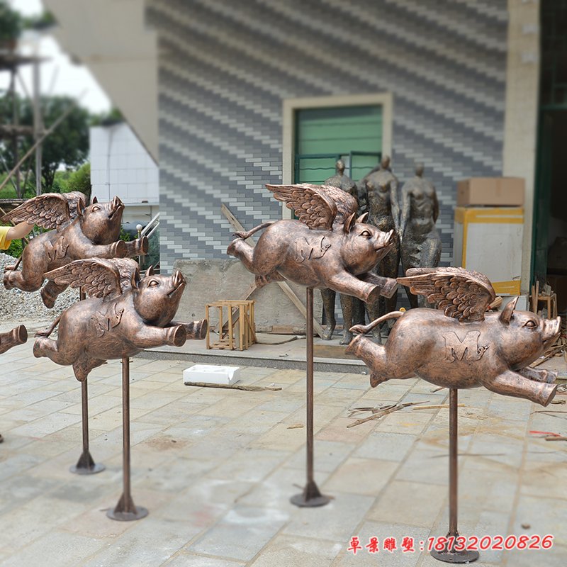 銅雕景觀飛豬雕塑