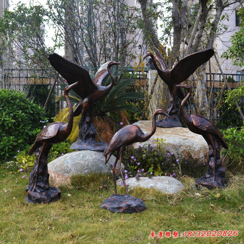 園林仙鶴動(dòng)物銅雕
