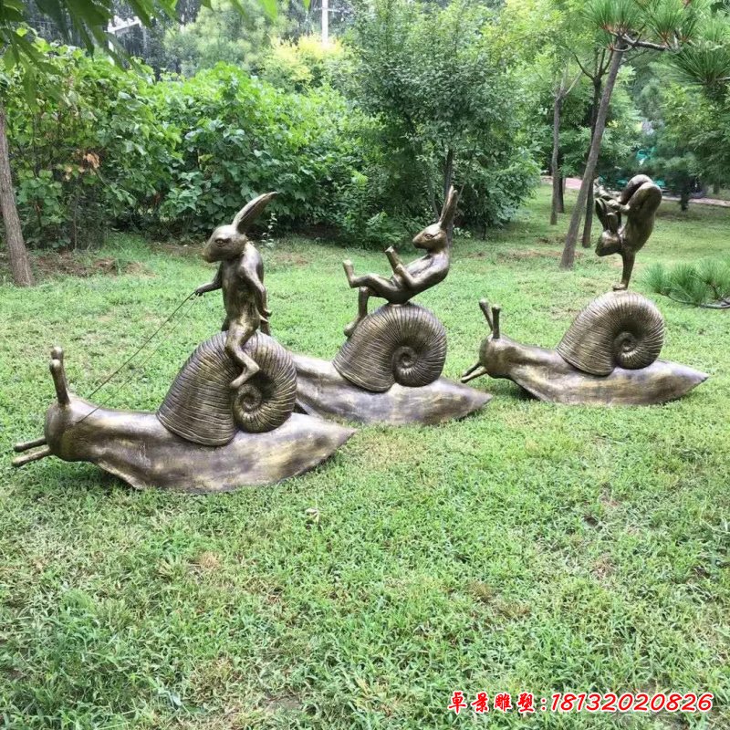 銅雕公園蝸牛兔子雕塑