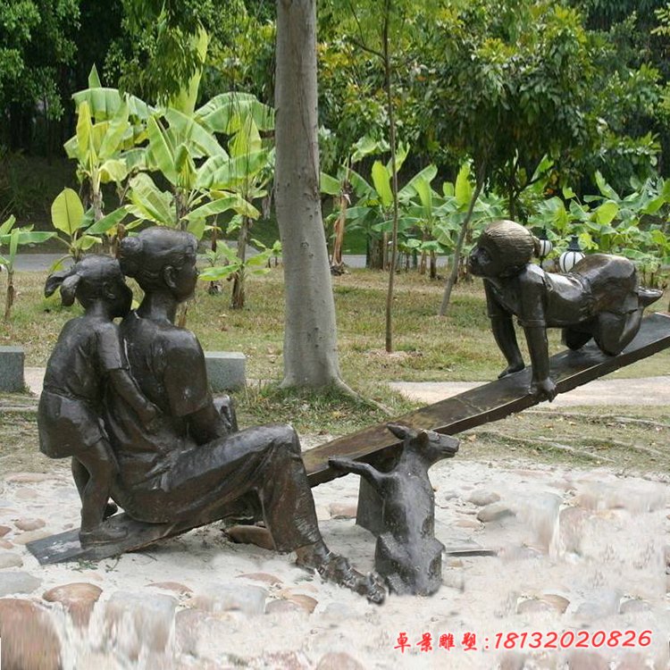 銅雕園林蹺蹺板人物