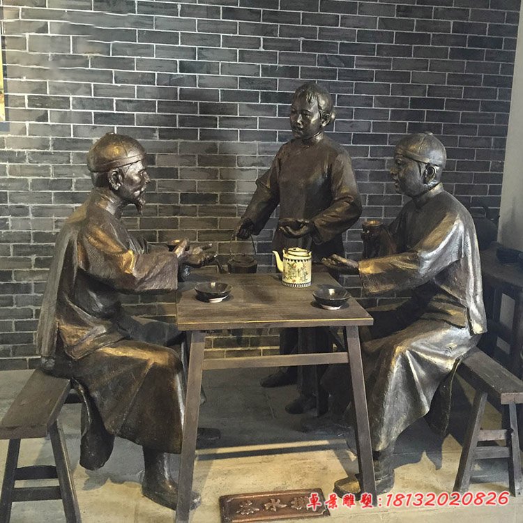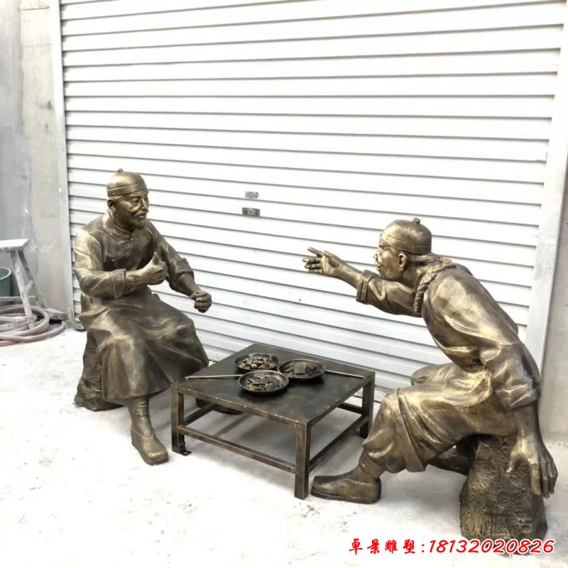 民俗喝茶人物銅雕