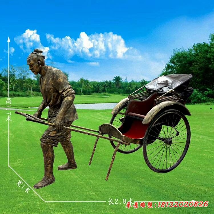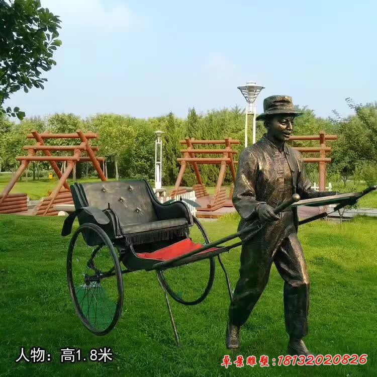 銅雕廣場拉黃包車人物雕塑