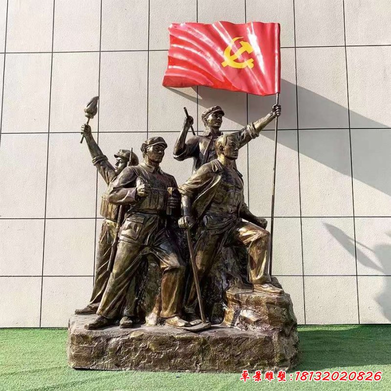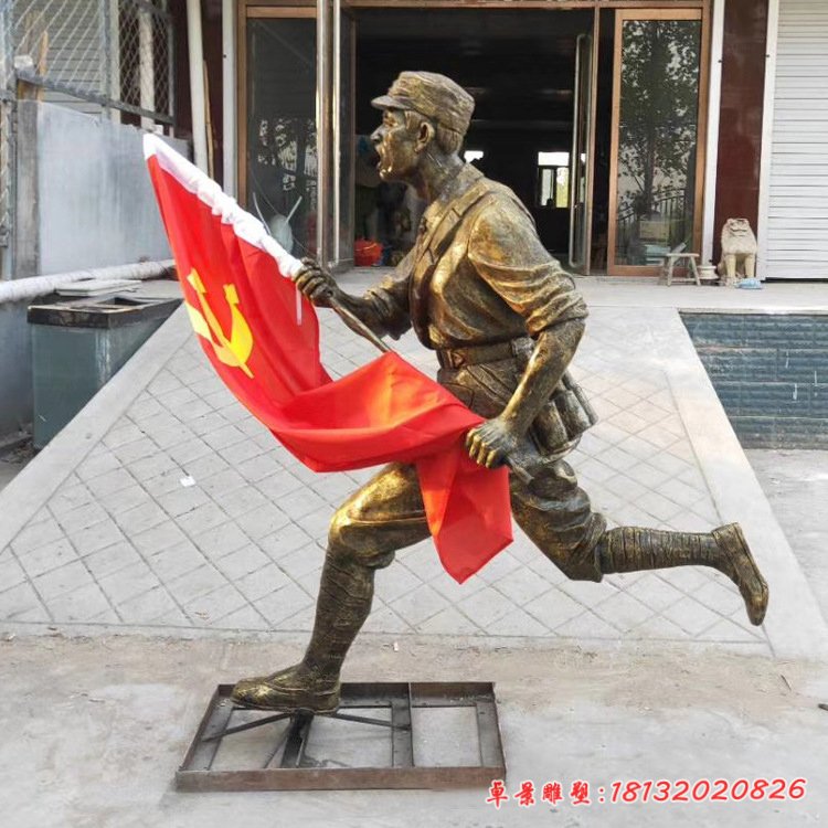 銅雕舉紅旗人物雕塑