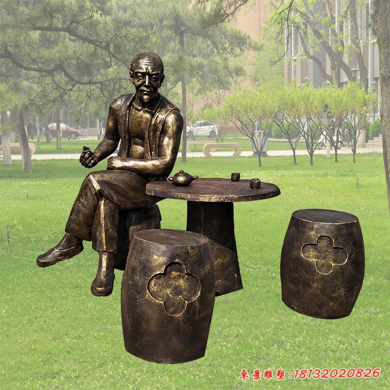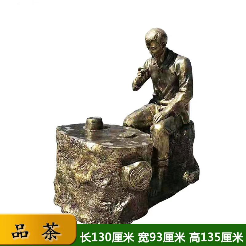 喝茶人物銅雕