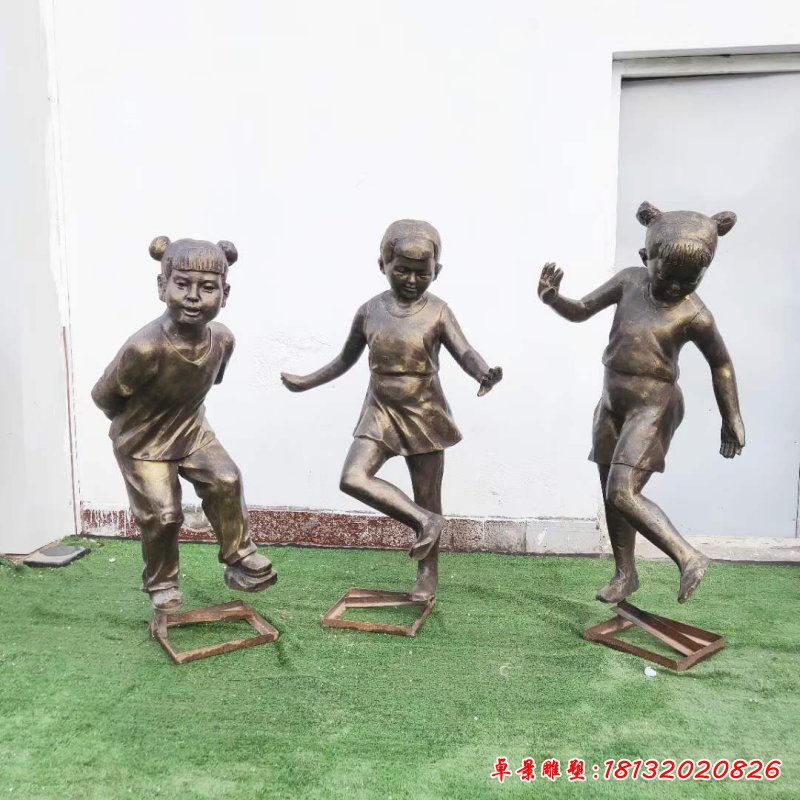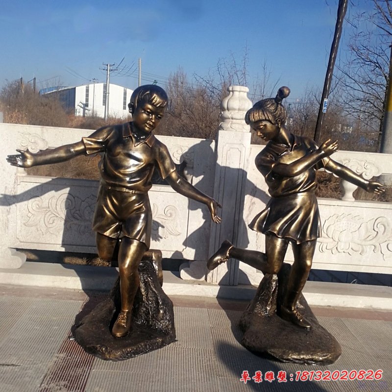 戶外玩耍兒童人物銅雕