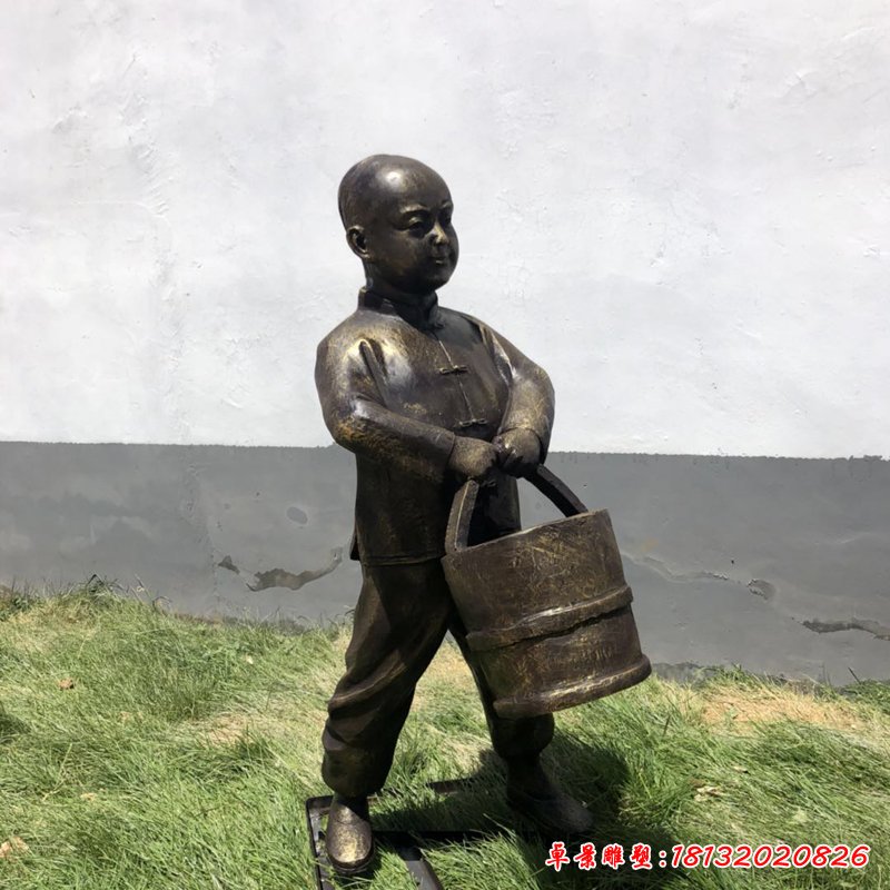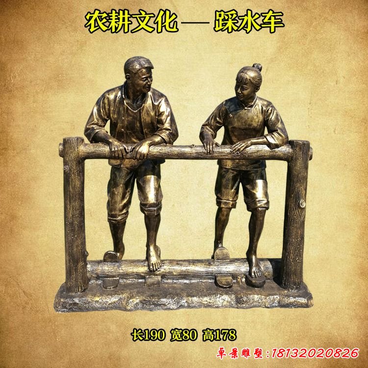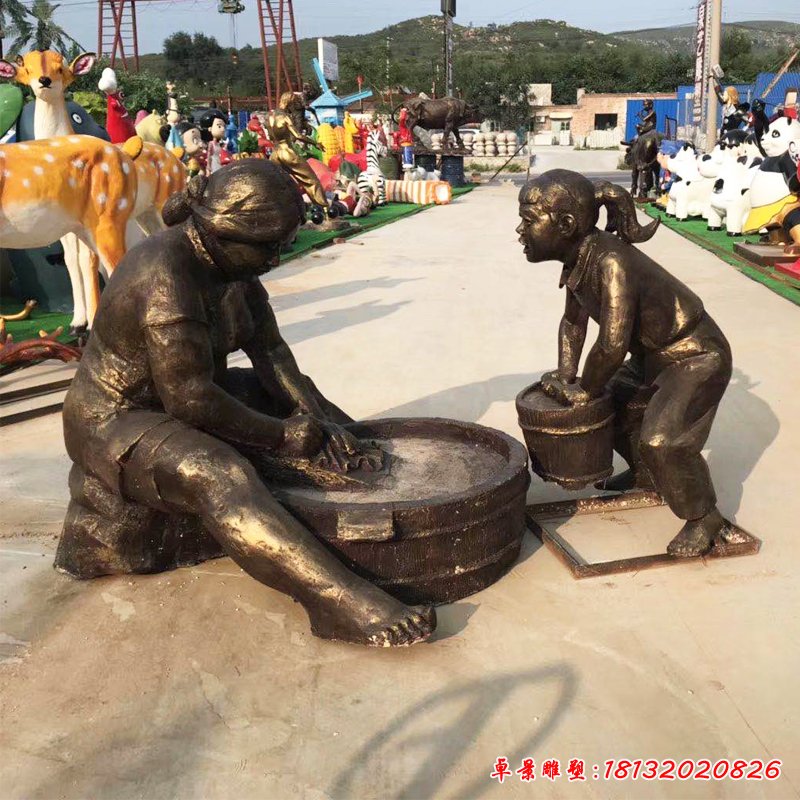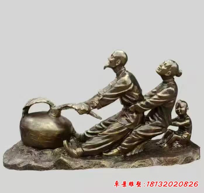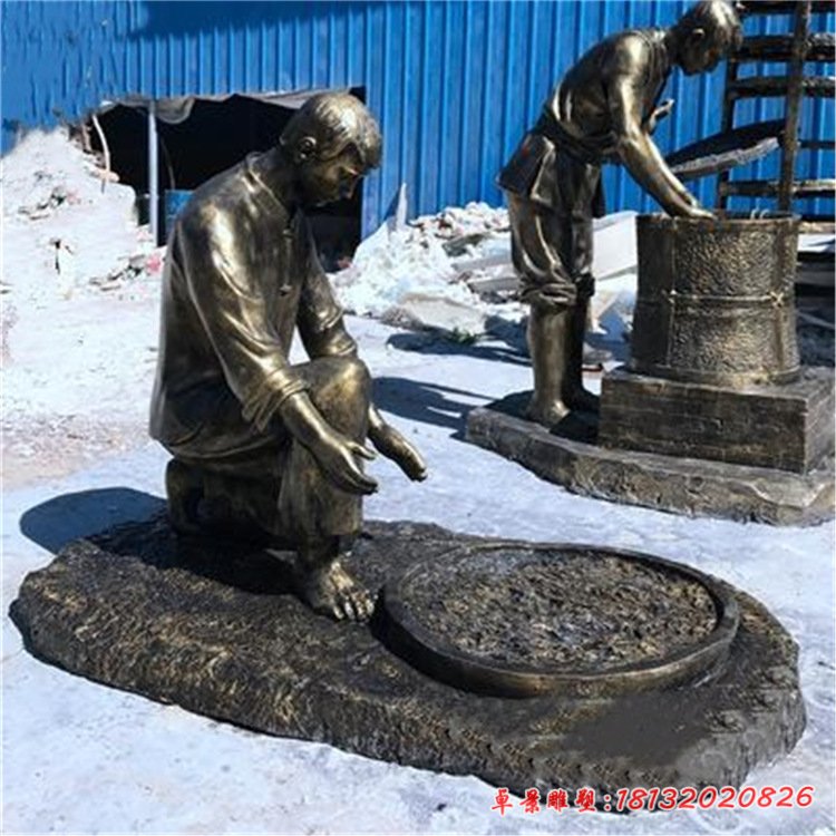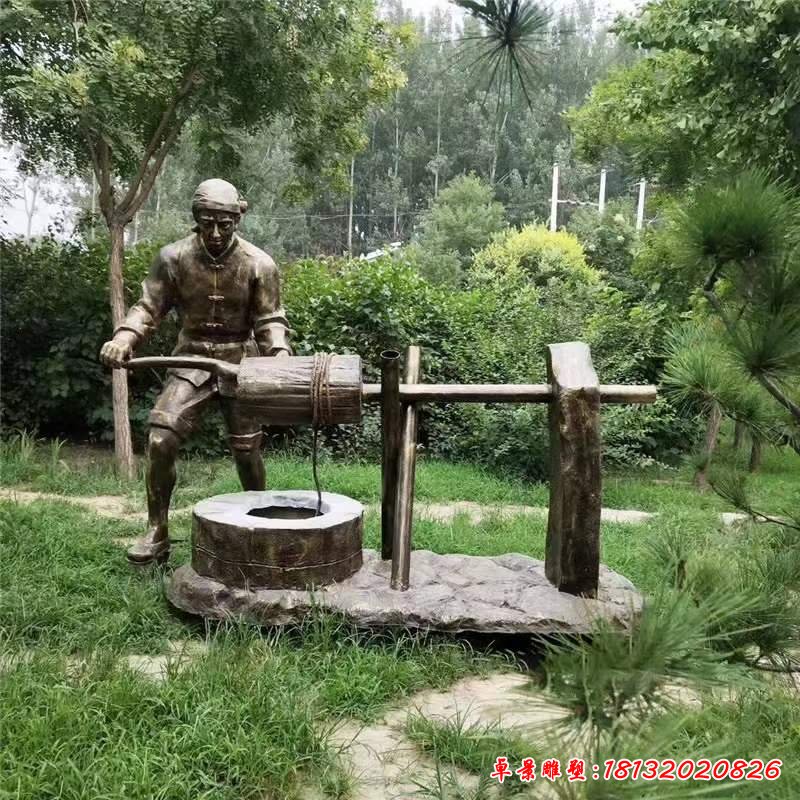 澆水人物民俗銅雕