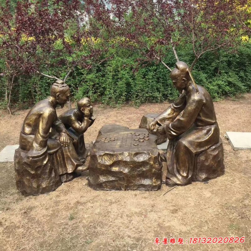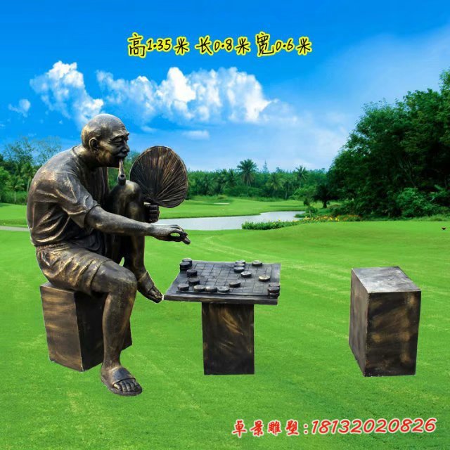 銅雕廣場下棋人物雕塑