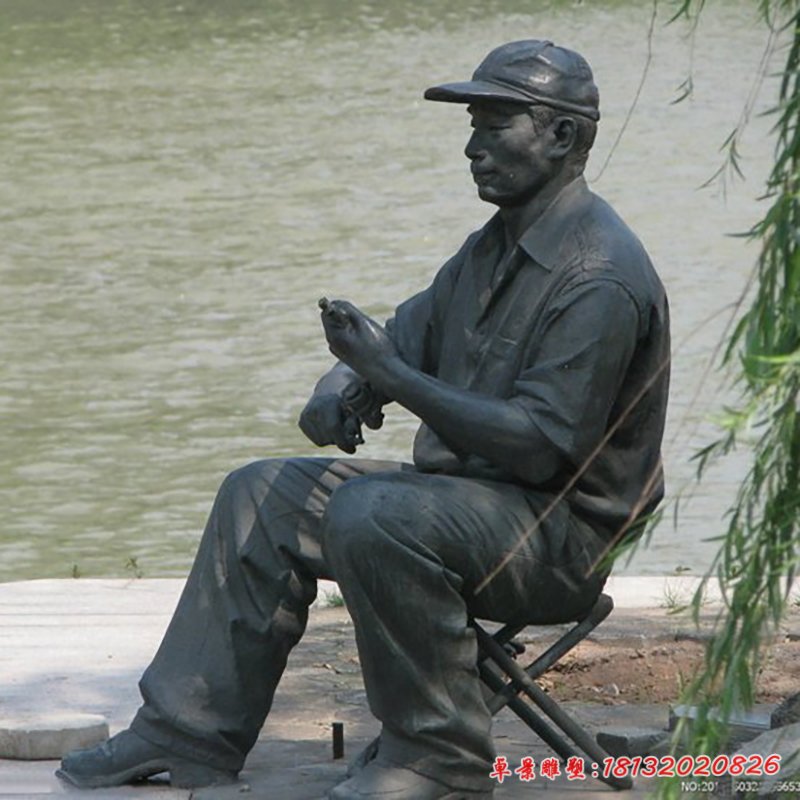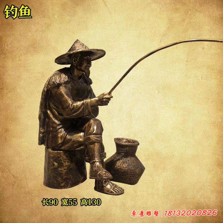 銅雕公園釣魚人物雕塑