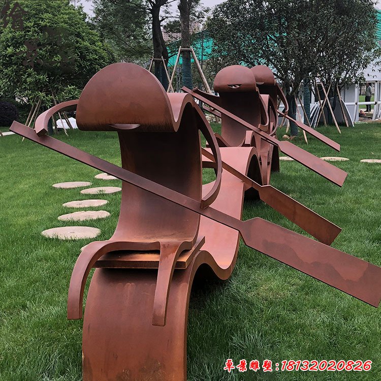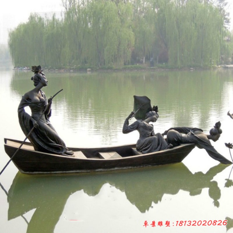 農夫劃竹筏銅雕