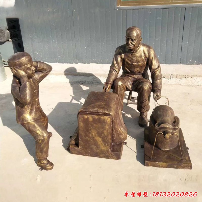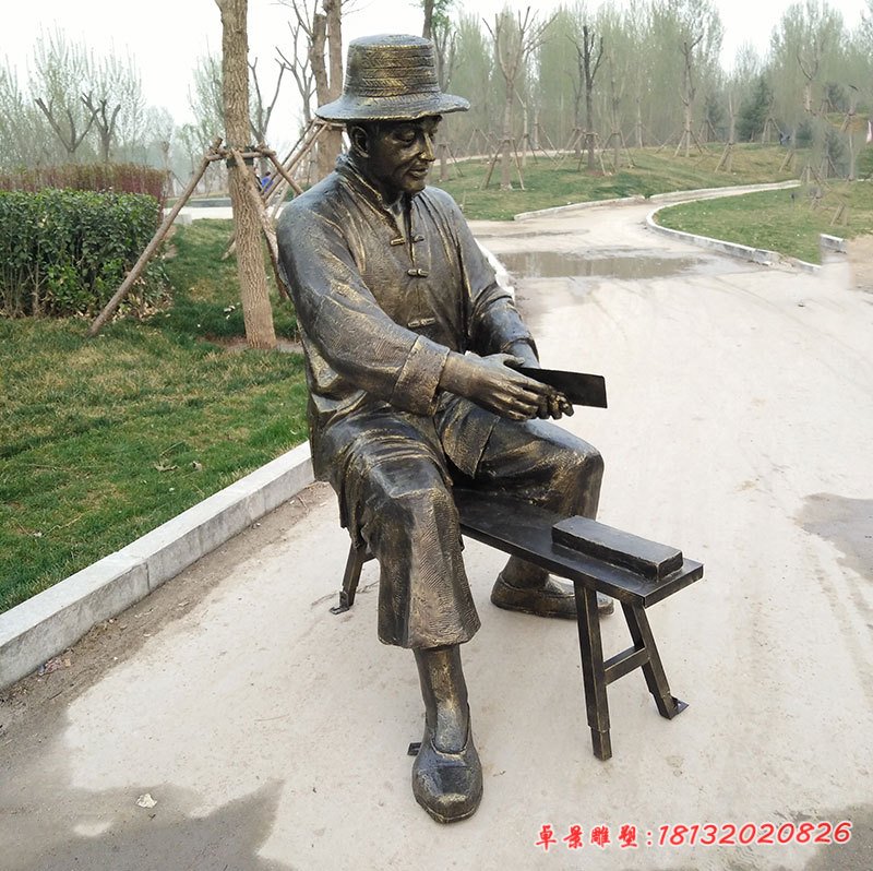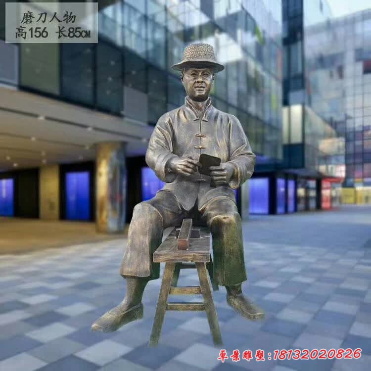 磨刀民俗人物銅雕
