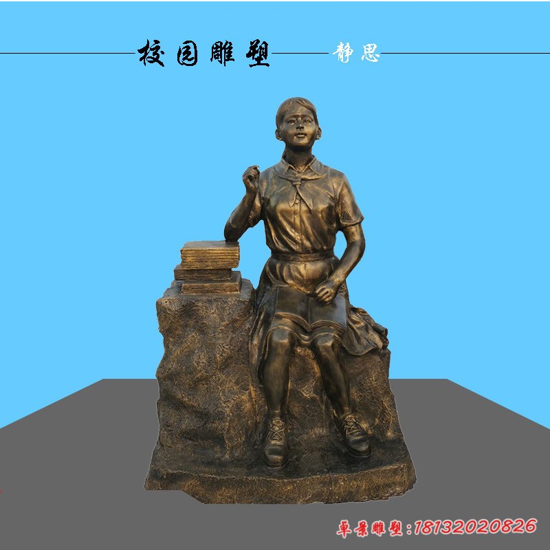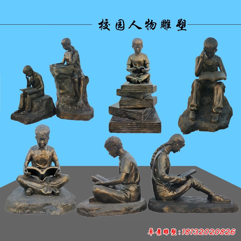 銅雕校園讀書人物