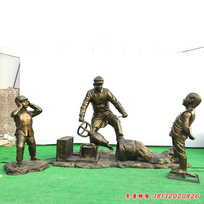 銅雕民俗釀酒人物雕塑
