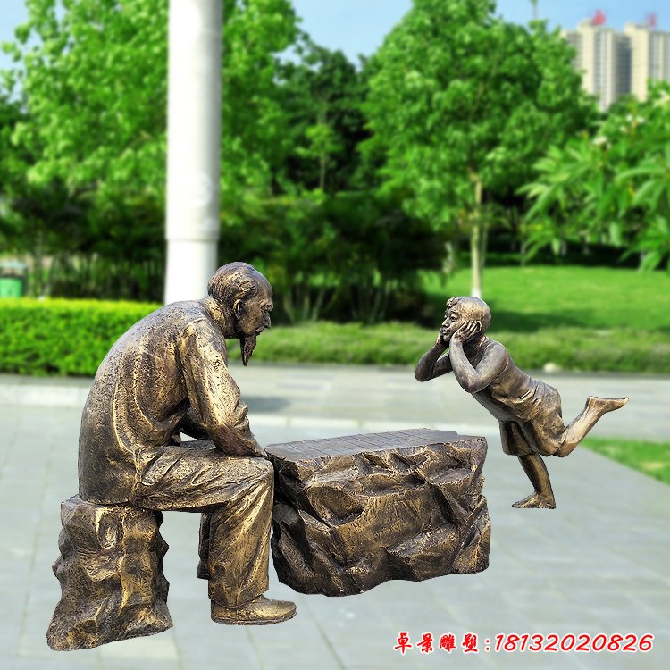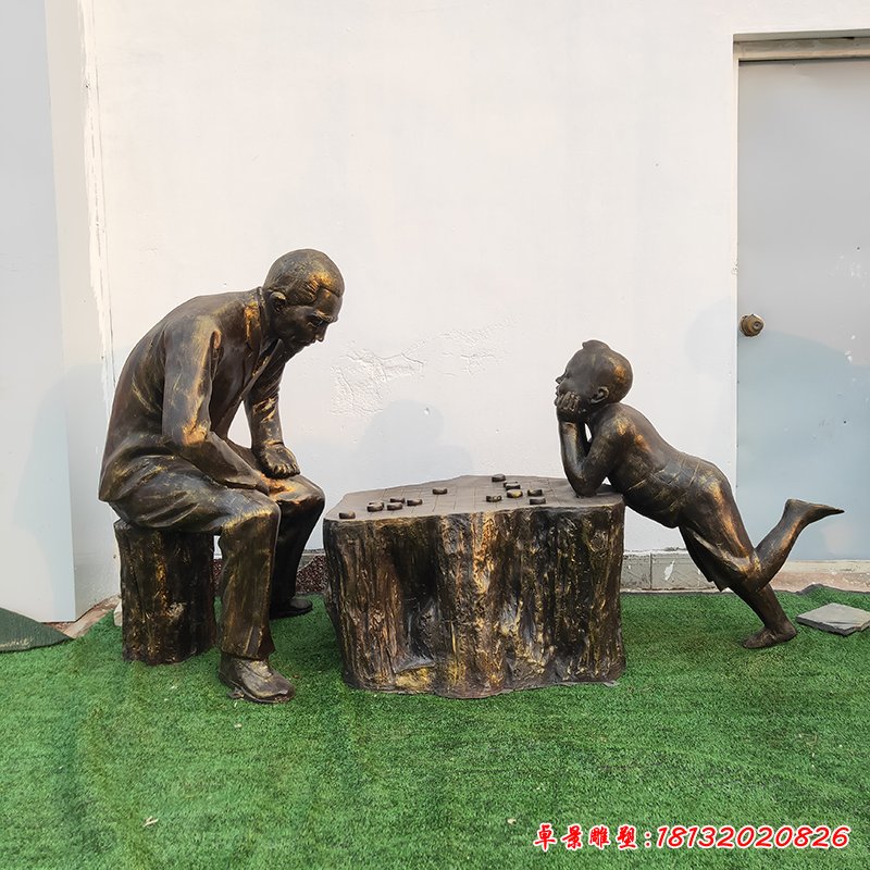爺孫下棋人物銅雕