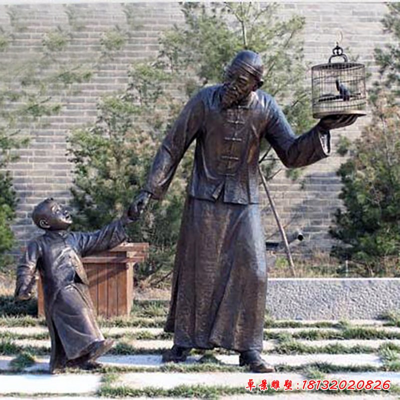園林遛鳥人物銅雕