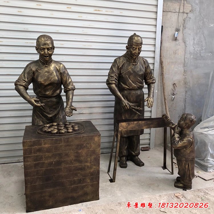 小吃人物銅雕