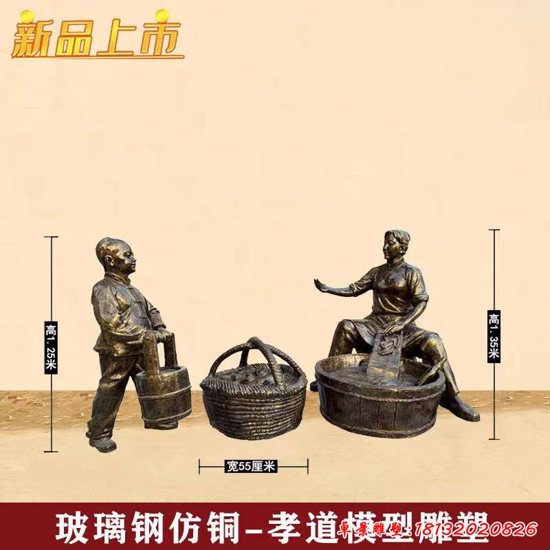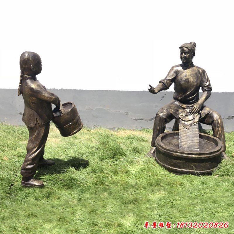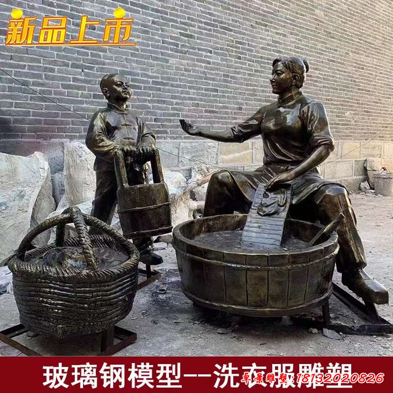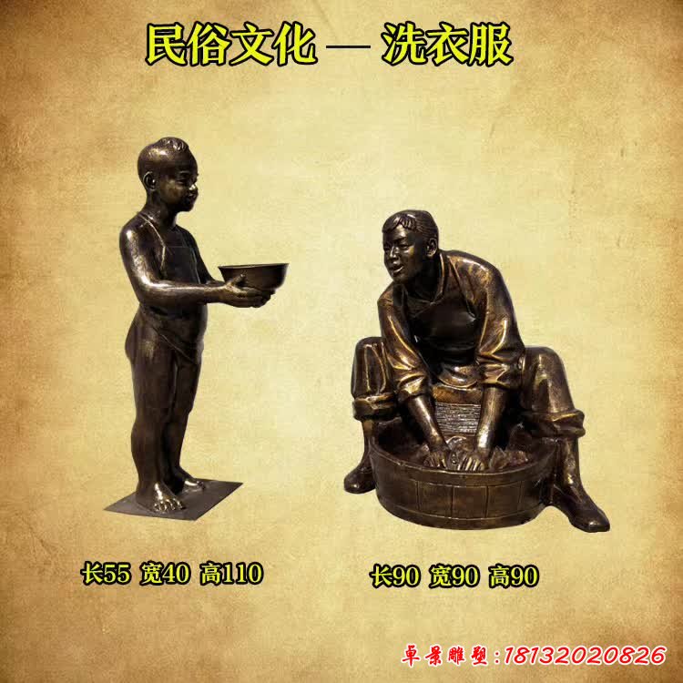 洗衣服人物民俗銅雕