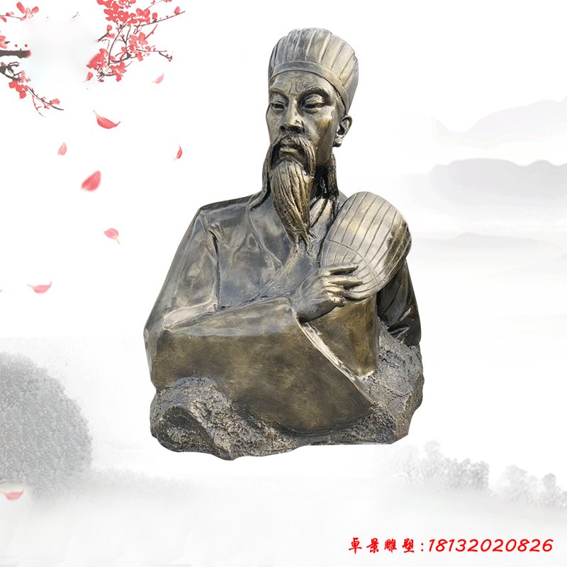 青銅古代名人屈原雕塑