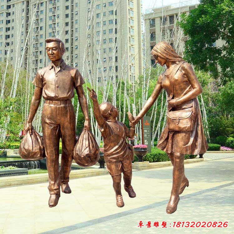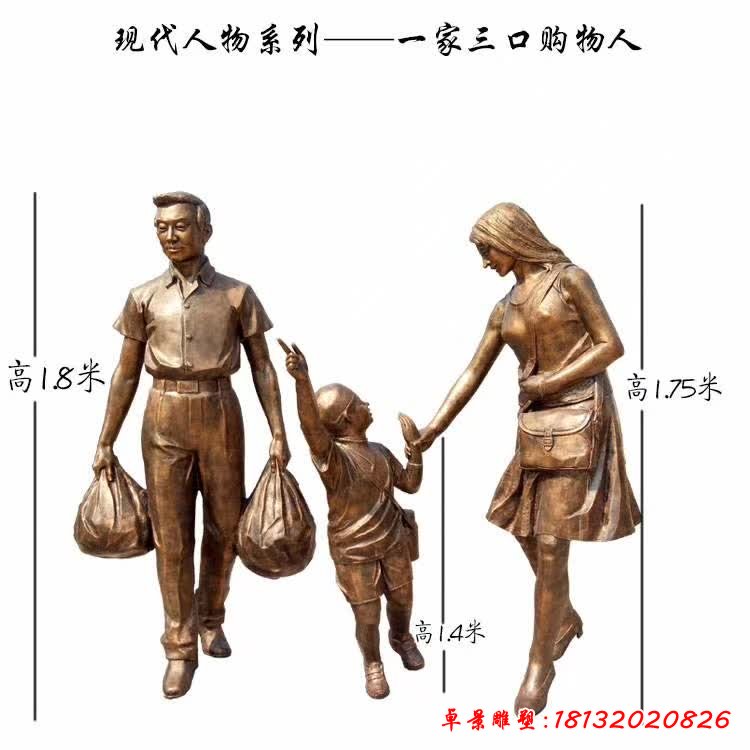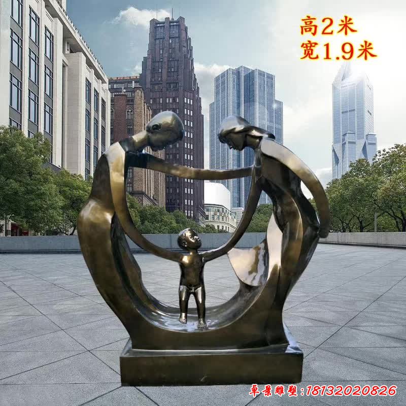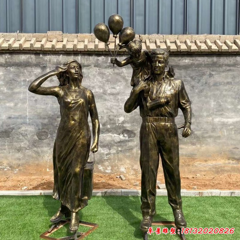 公園一家三口人物雕塑
