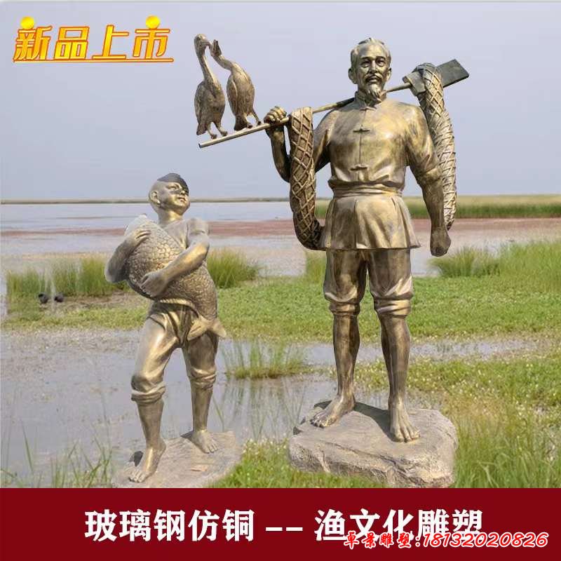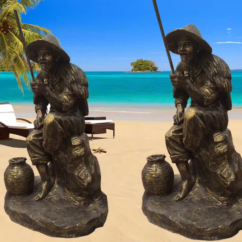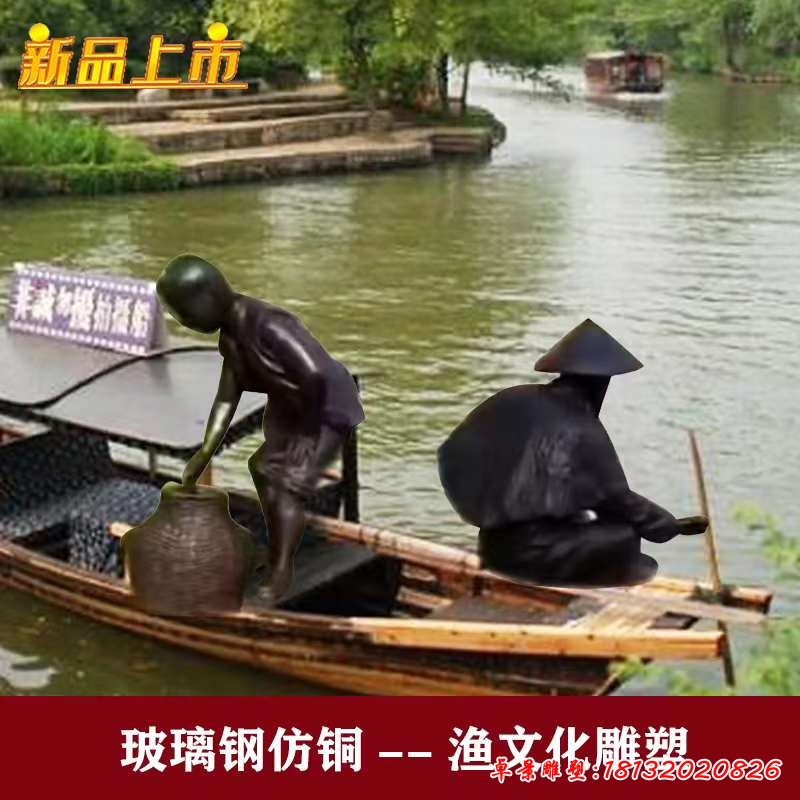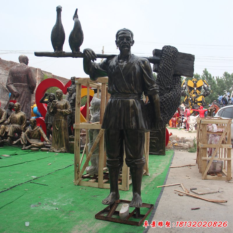 劃船漁夫和鸕鶿雕塑
