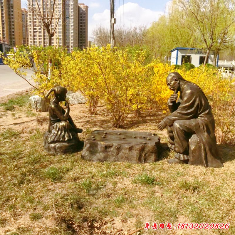 銅雕廣場祖孫下棋人物雕塑