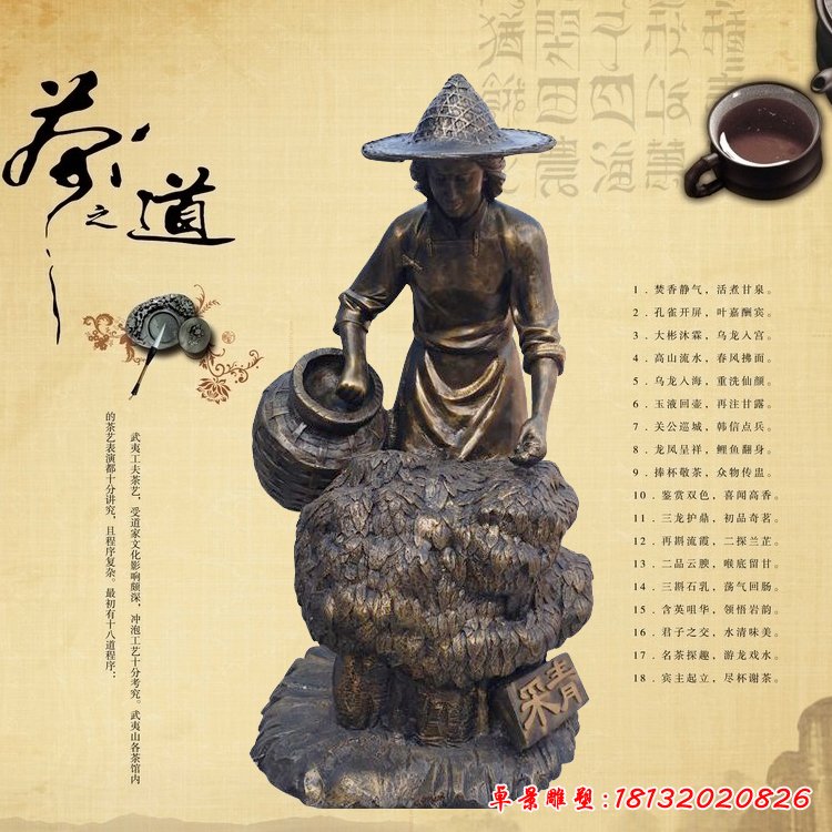 民俗制茶銅雕人物