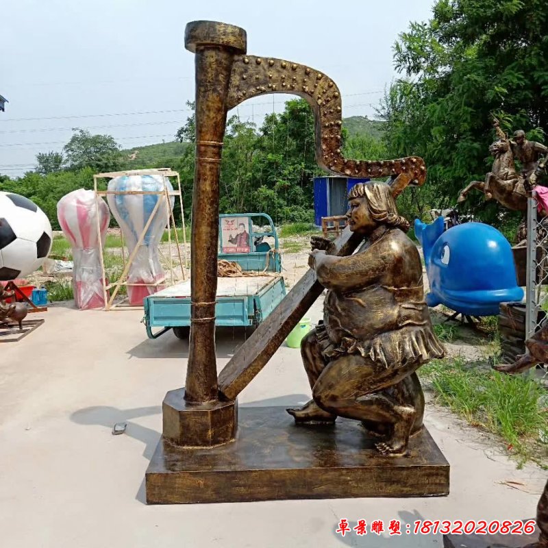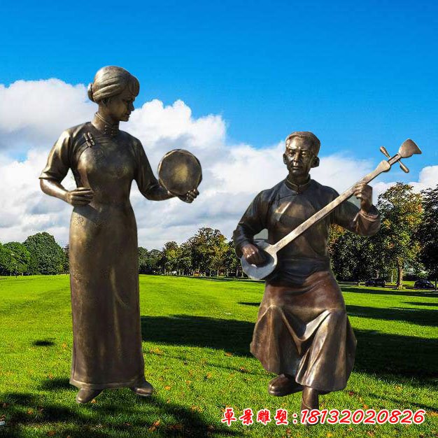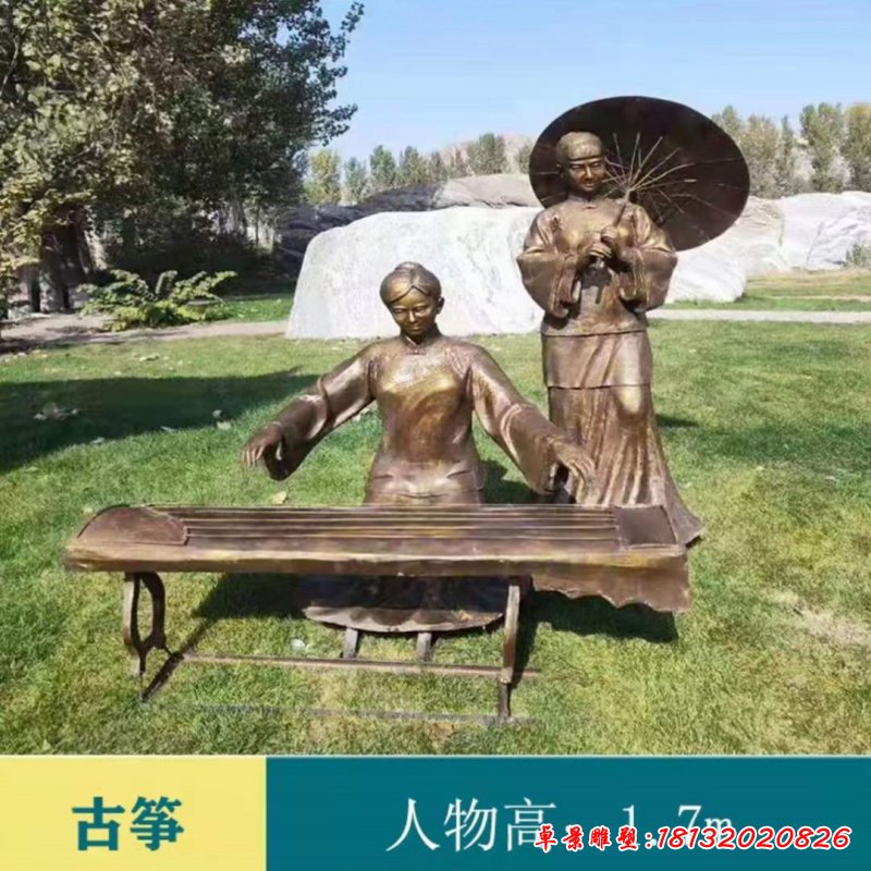 古箏人物民俗銅雕