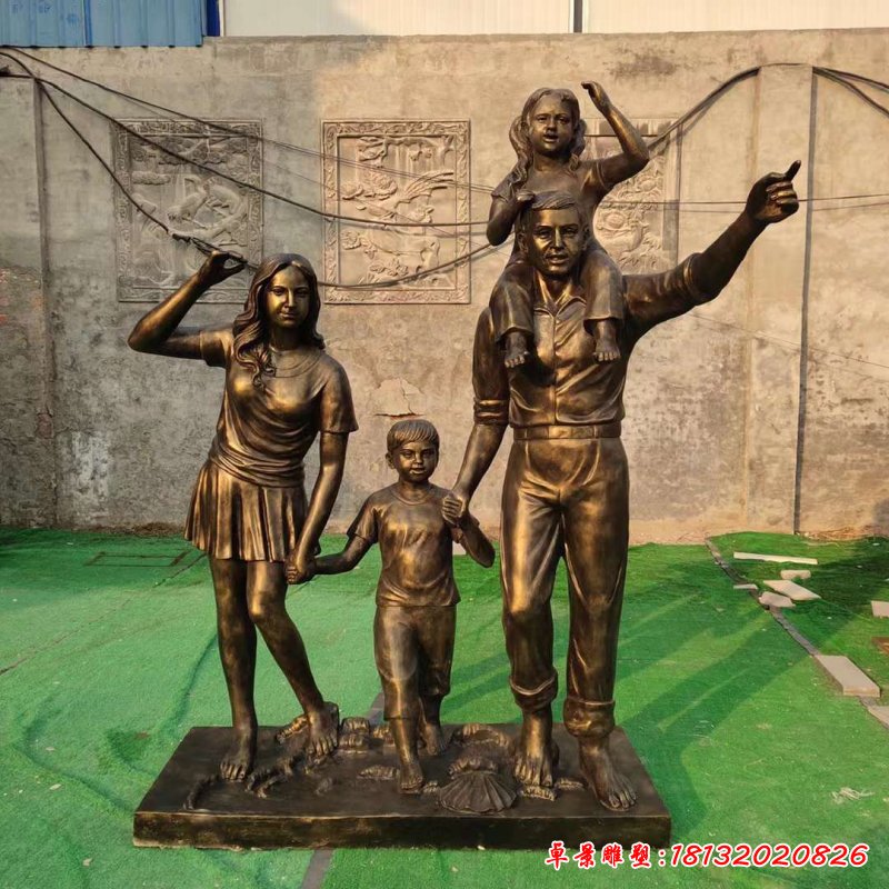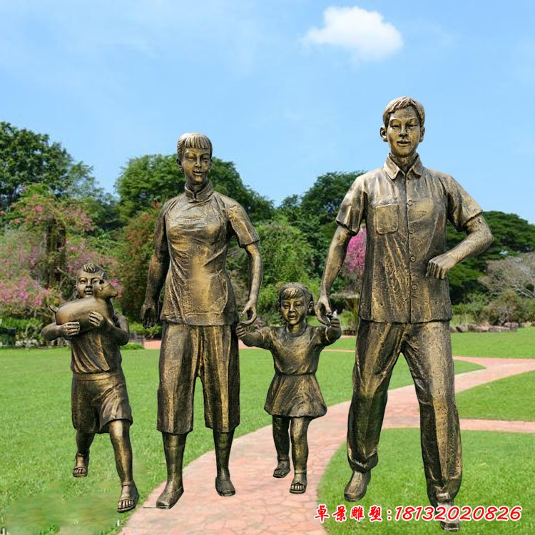 園林一家四口銅雕