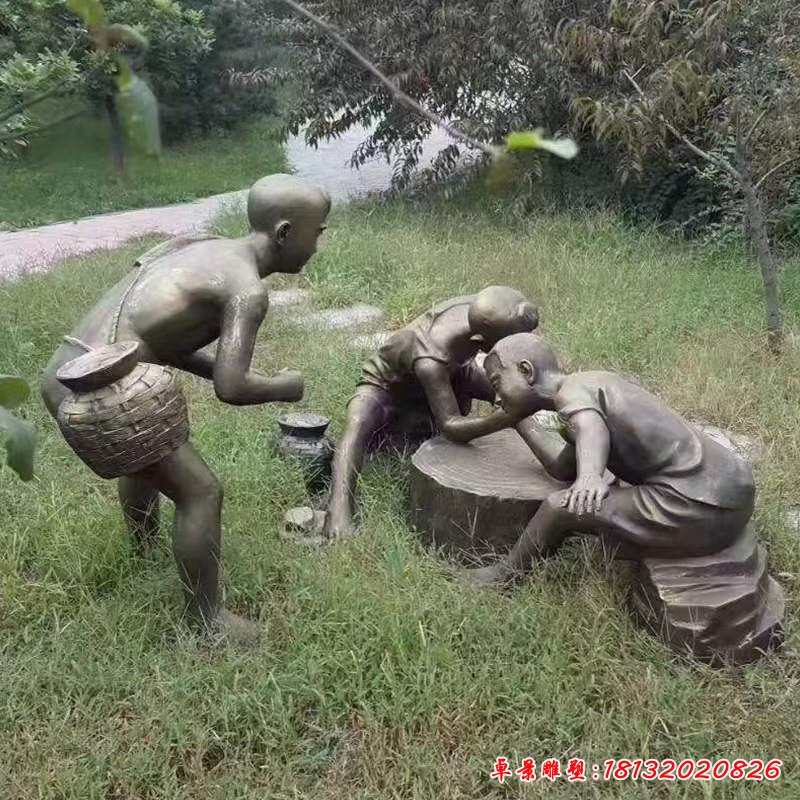 守株待兔人物銅雕