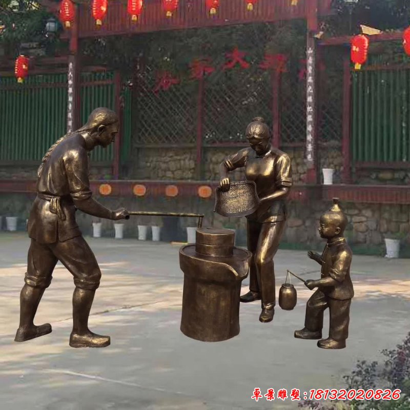 民俗廣場釀酒小品人物銅雕