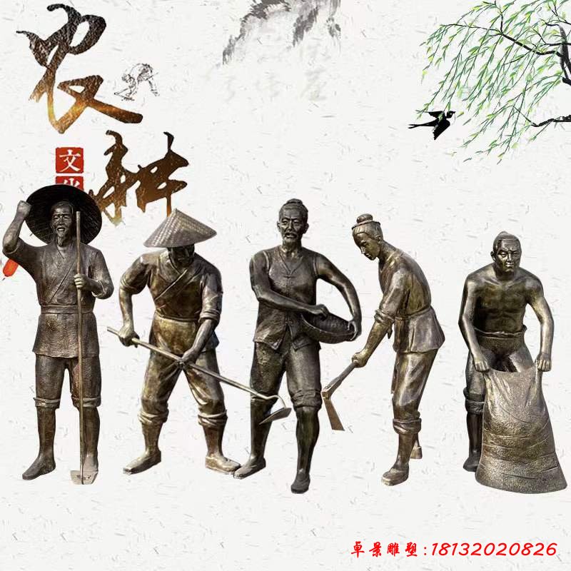 古代農耕人物銅雕