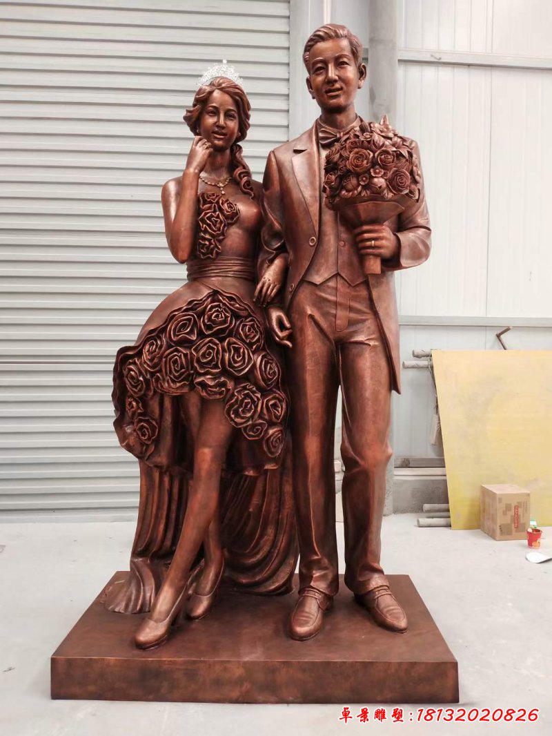 老夫妻帶戒指銅雕