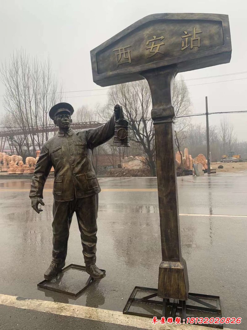 拉溜柱人物銅雕