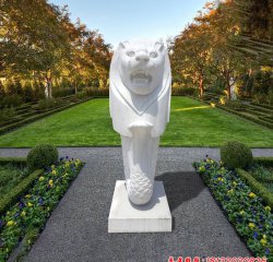 公園漢白玉魚尾獅石雕