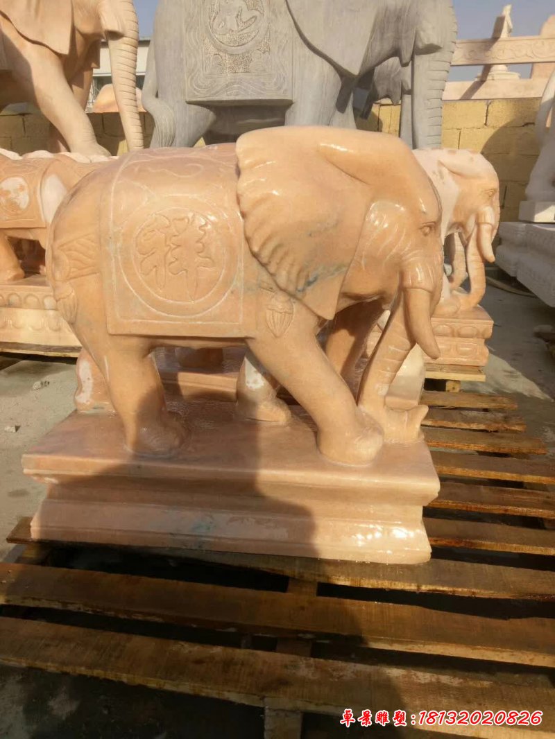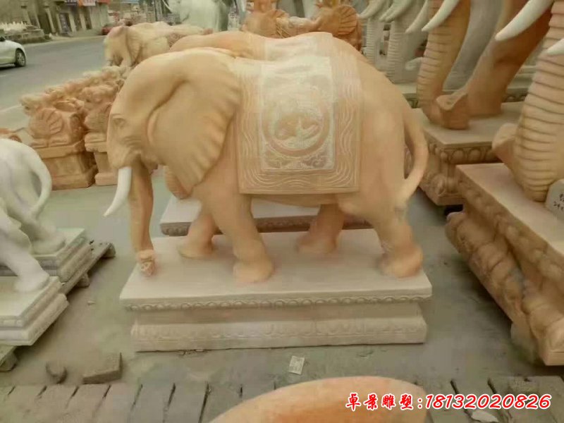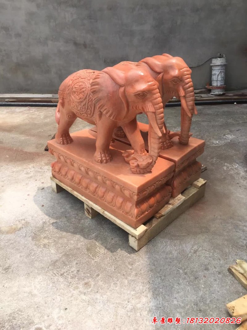 晚霞紅動物大象石雕