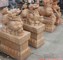 晚霞紅貔貅石雕