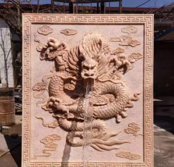 晚霞紅石浮雕壁畫龍頭噴水