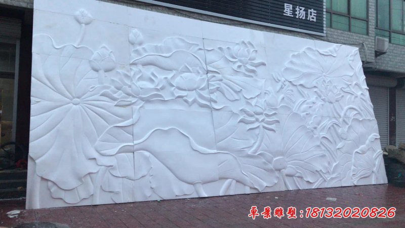 漢白玉荷花石浮雕壁畫