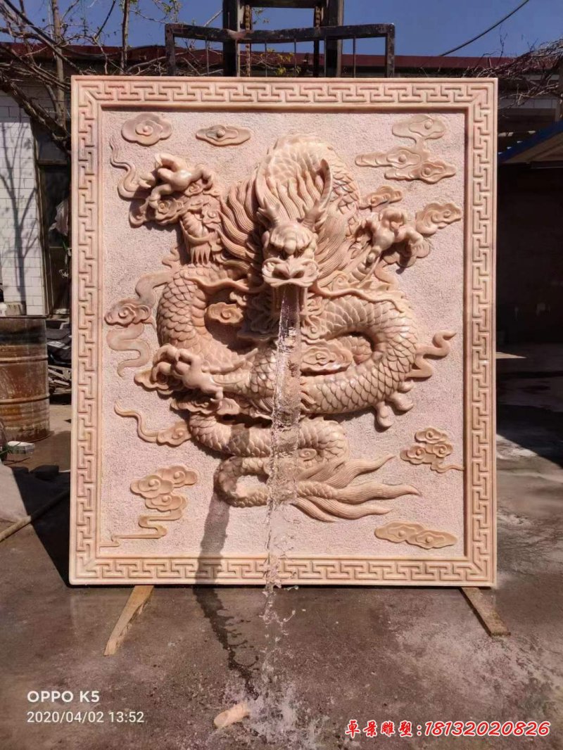 晚霞紅石浮雕壁畫龍頭噴水