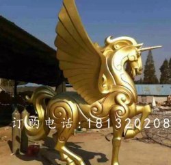 獨(dú)角獸銅雕,鎏金銅馬雕塑