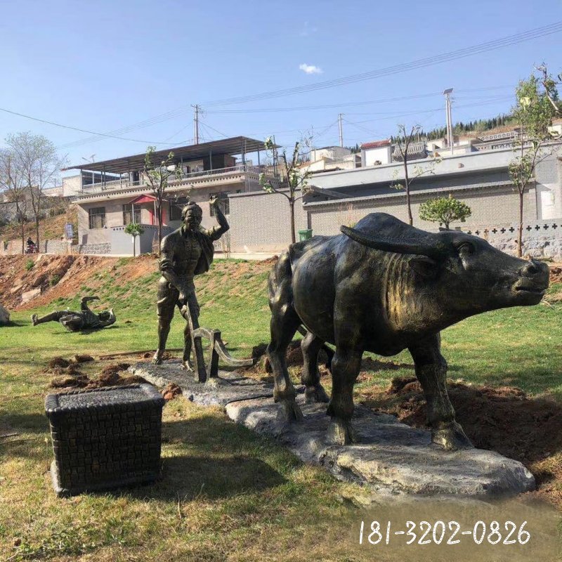 民俗動物銅雕牛拉犁