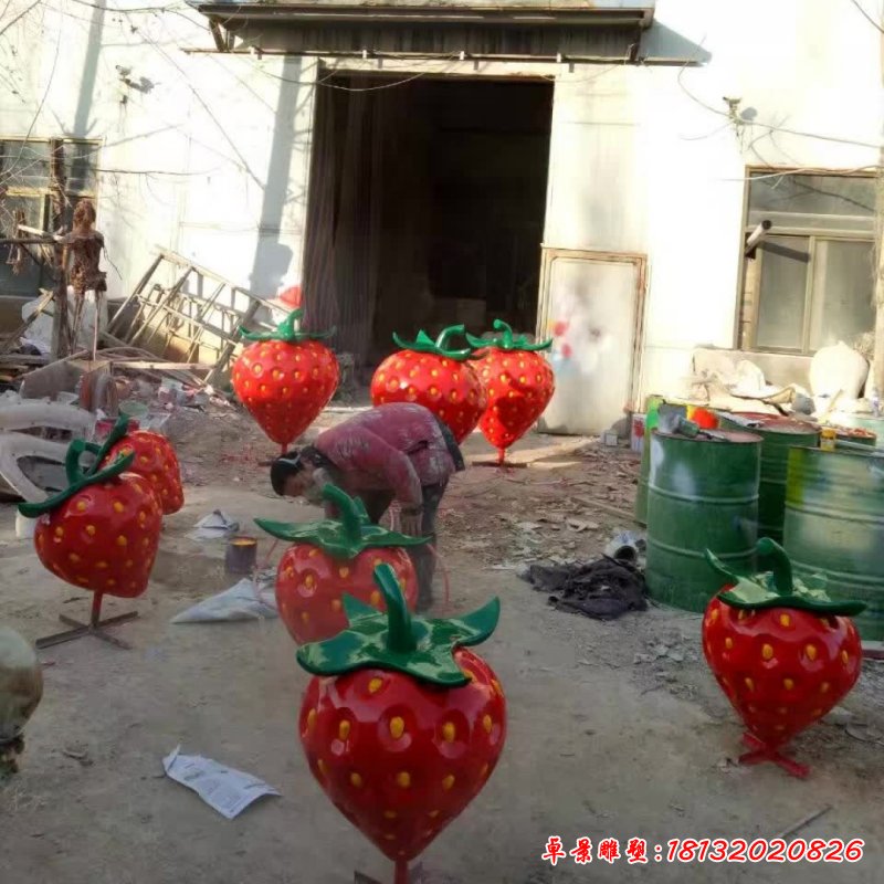 廣場玻璃鋼仿真草莓雕塑