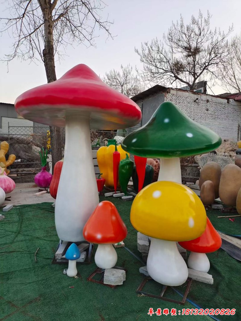 玻璃鋼彩色蘑菇雕塑
