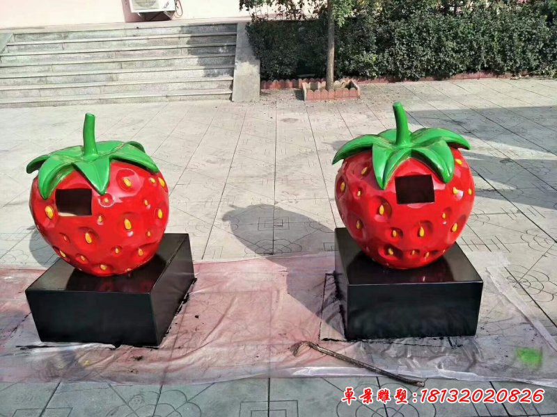 玻璃鋼草莓造型垃圾桶雕塑