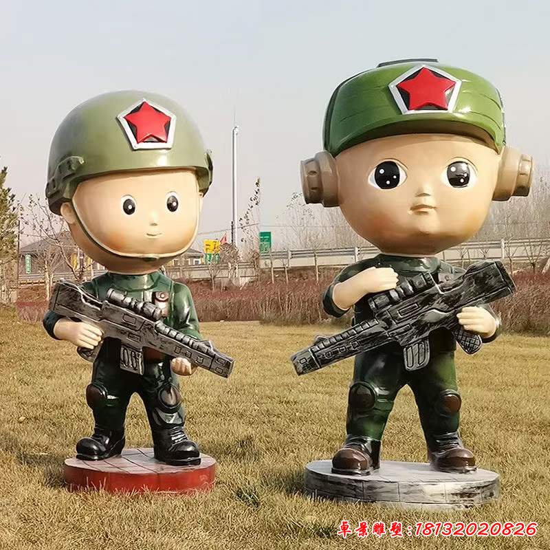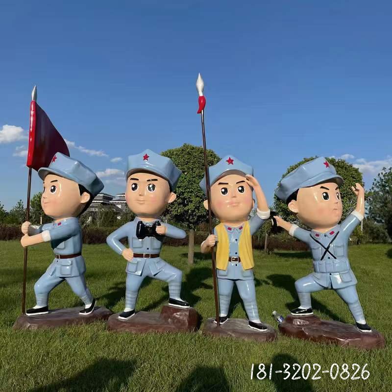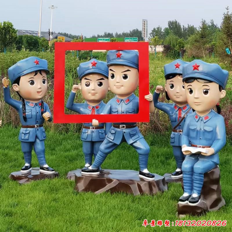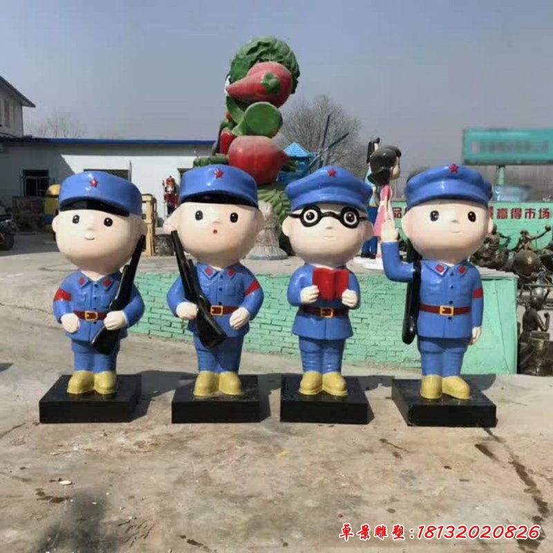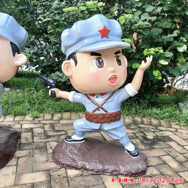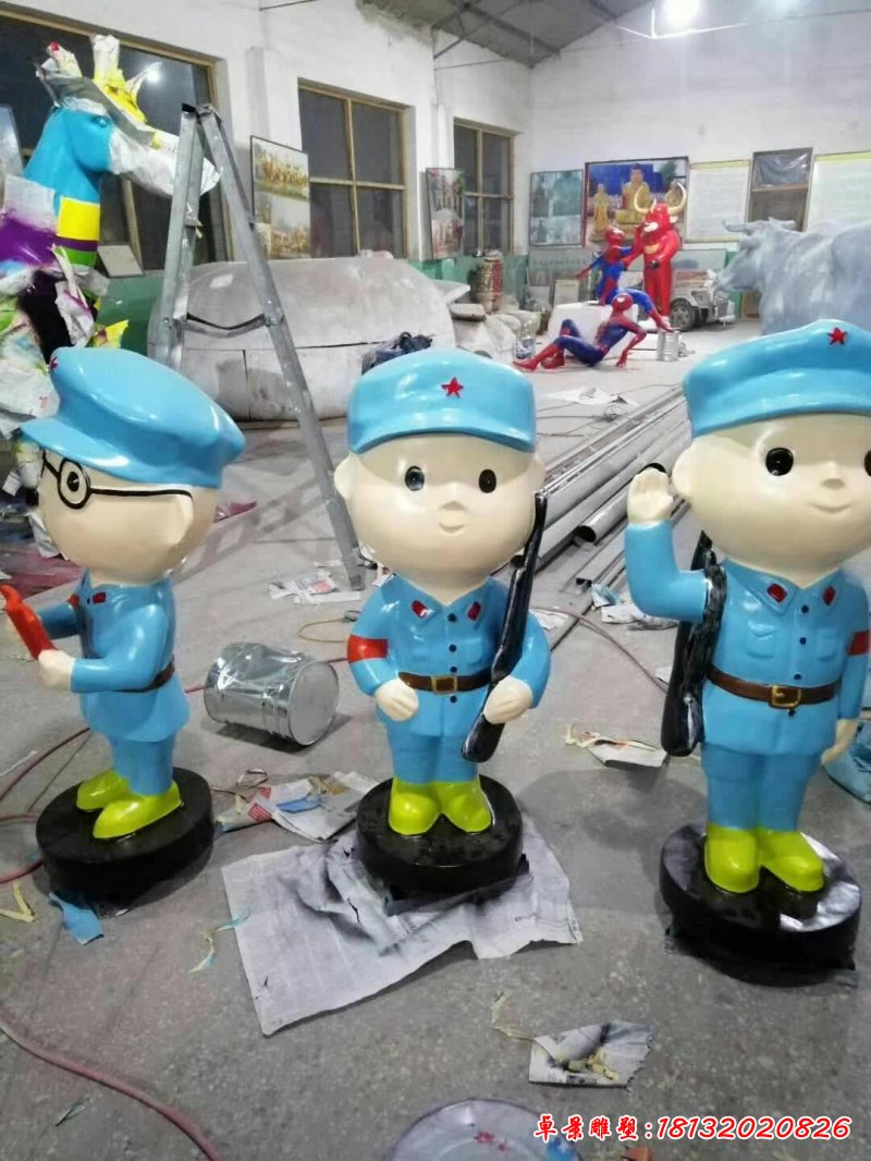 城市景區(qū)玻璃鋼卡通八路軍兒童雕塑