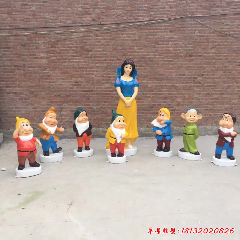 卡通玻璃鋼白雪公主與七個小矮人雕塑