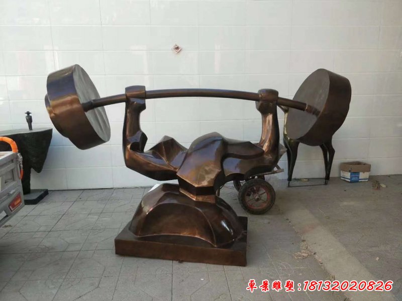抽象舉重人物銅雕